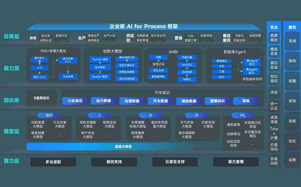 端到端的一站式AI工作空间深度融合了从企业战略规划到日常经营的全流程业务板块,,,,定向解决车企内部领域多、、部门多、、链条长、、场景碎片化等难题,,,支持车企快速构建以AI为核心的生产力写作体系,,,,实现任务执行与AI能力的无缝集成与交互